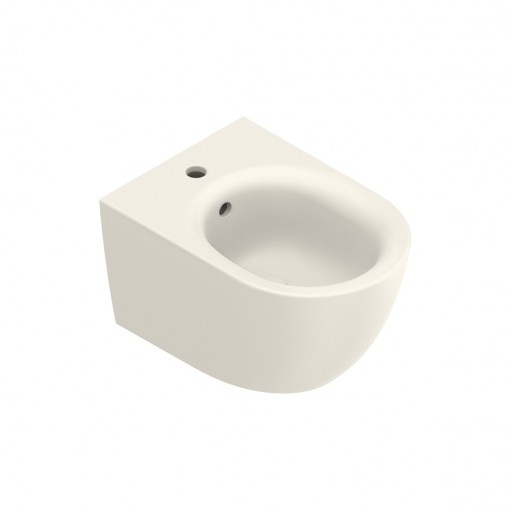 Bidet závěsný jednootvorový s přepadem a se skrytým upevněním.